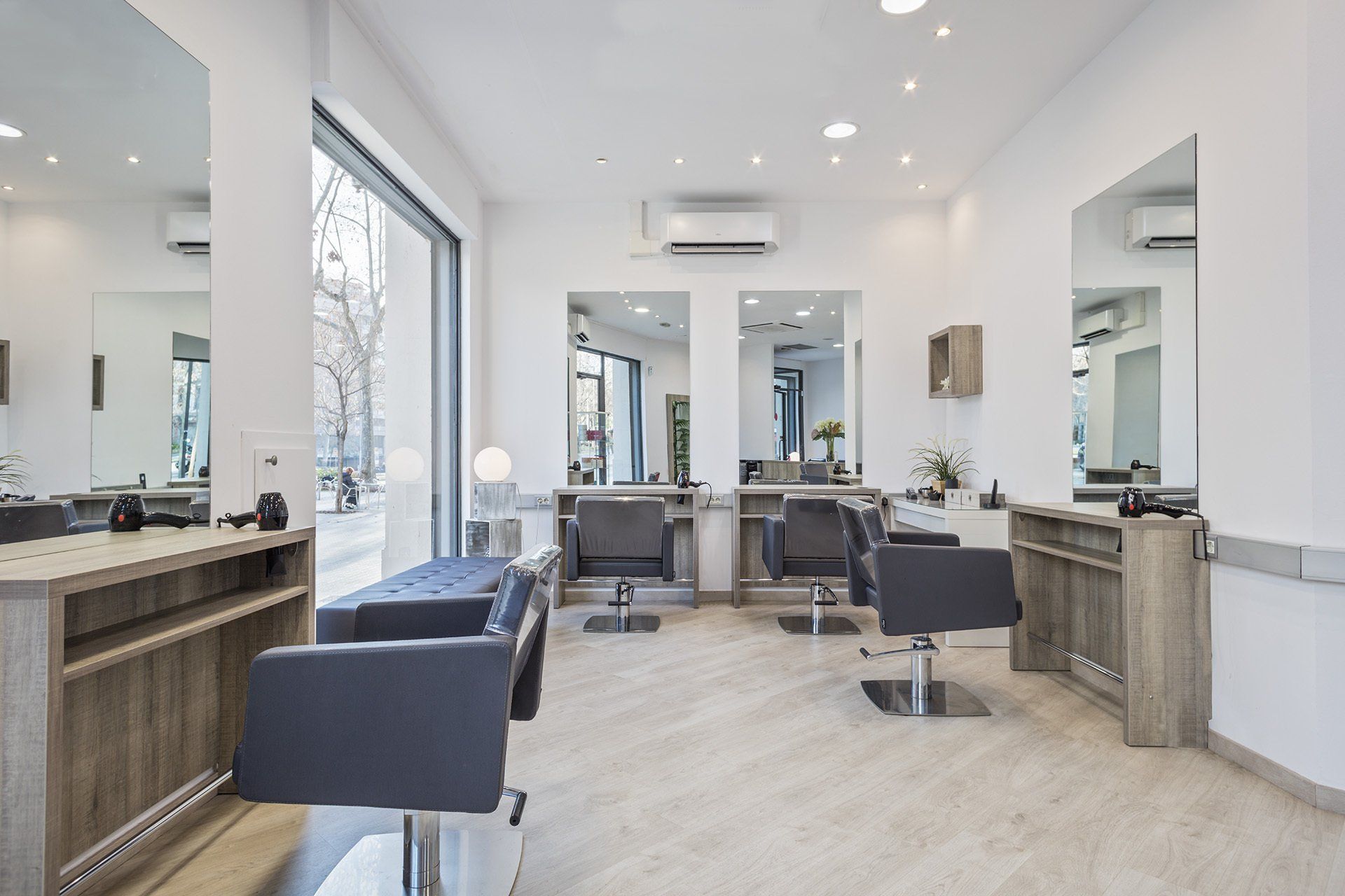 Situado en una de las emblemáticas avenidas de Barcelona, el salón de Eixample se ubica en el corazón de Paseo San Juan con la calle Caspe. Gracias a su ubicación el salón cuenta con gran luz natural dándole ese ambiente agradable. El salón cuenta con un gran espacio diáfano para la zona de los tocadores y la zona de estética para manicuras y pedicuras. Con más privacidad, encontramos la zona de los lavacabezas.